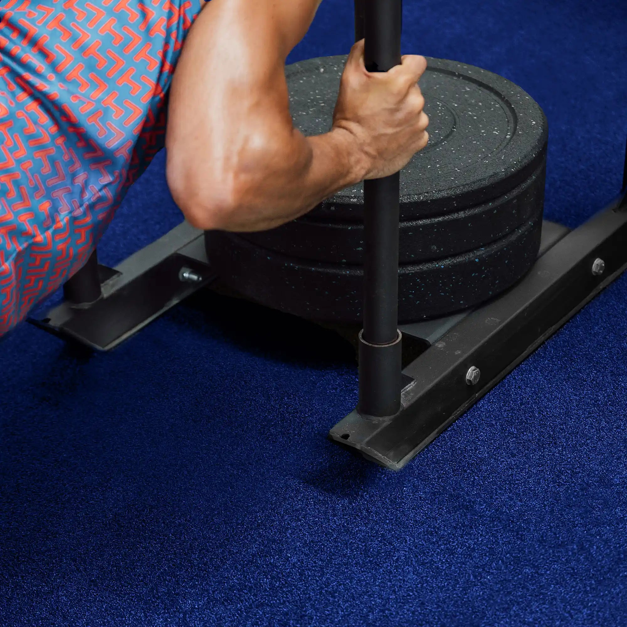Hochleistungs-Kunstrasenbahn in intensivem Blau, einfarbig. Ideal für funktionelles Training und Schlittenübungen.