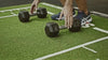 Pista de césped artificial de alto rendimiento en negro intenso monocolor. Ideal para entrenamientos funcionales y ejercicios con trineos.